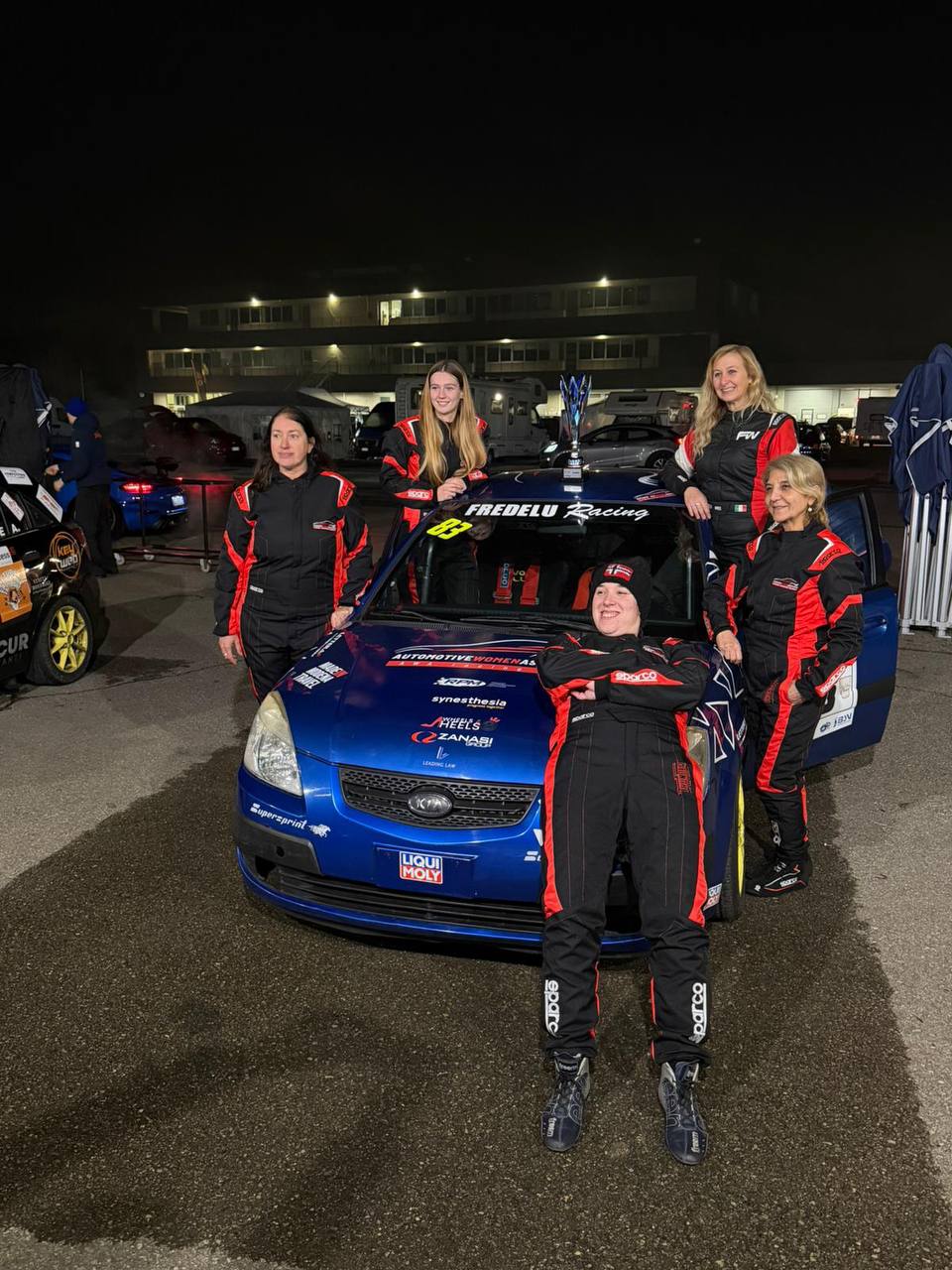 Lo scorso 6 dicembre all’Autodromo di Modena, AWA – Automotive Women Association ha portato in pista “Women on Track”, il suo primo team interamente femminile, partecipando alla 10 Ore della venticinquesima edizione della The Fox Running. Su un tracciato intenso e tecnico come quello di Marzaglia, lungo 2068 metri, oltre 50 equipaggi si sono sfidati con un obiettivo semplice: completare più giri possibili. Il team di AWA ha scelto di competere nella categoria PRO, affrontando vetture molto diverse tra loro, dalla Citroën C2 VTS alla Mini Cooper R50.